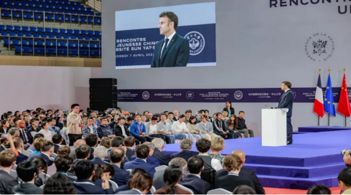 2023年4月,我院师生代表参加法国总统马克龙在中山大学的青年见面会