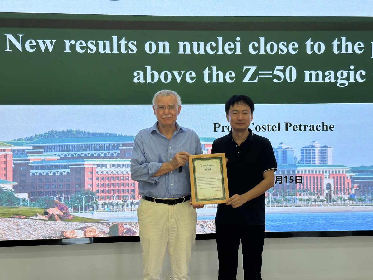 2025年10月15日,我院特邀法国巴黎萨克雷大学全职教授、著名核物理学家Costel PETRACHE作题为《向Z=50质子滴线进军:奇特原子核结构研究新进展》的精彩学术报告。本次讲座由我院袁岑溪教授主持。